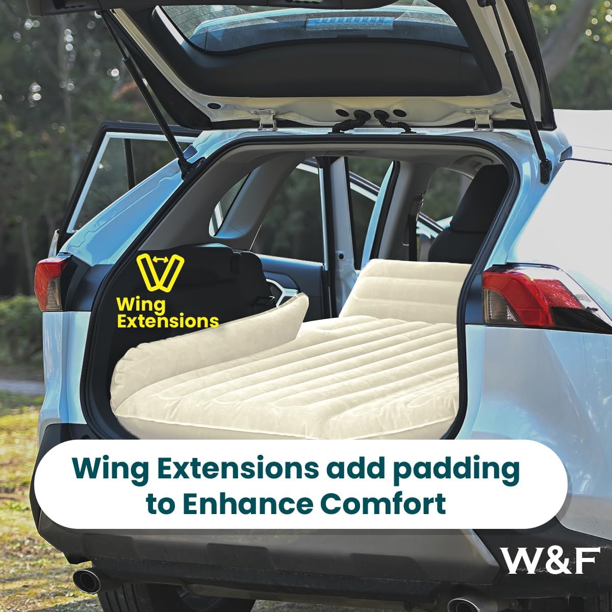 • SUV Sleeping Redefined: vertical design to ensure full inflation, creating a firm and seamless sleeping platform that keeps campers elevated above the ground.