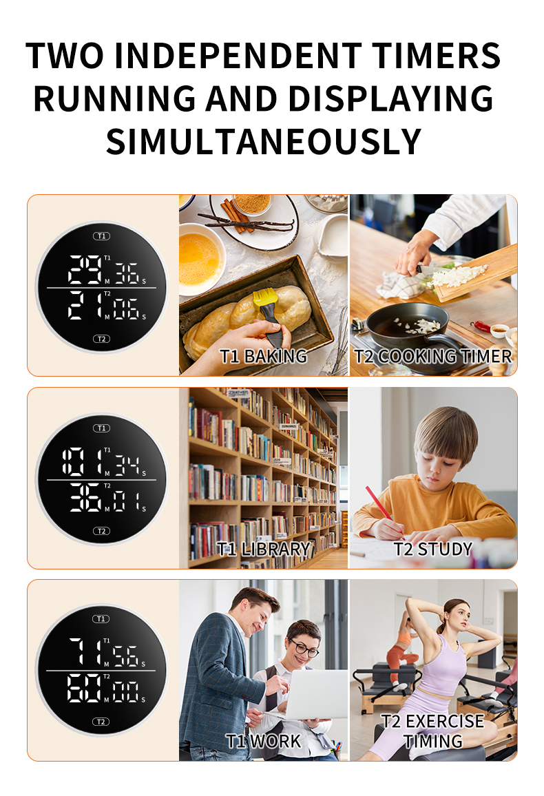 Kitchen Magnetic Digital Visual Timer Dual Count up Down With Magnetic Back Kids Study Countdown Timer
